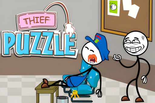 Thief Puzzle challenges players to grab items in a humorous online puzzle game. The goal is to avoid detection while attempting to steal all items in each level. Players can seek hints if needed, adding an extra layer of strategy to the game.